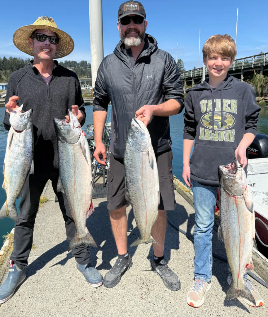 Out of Brookings, the season kicked off with some of the most consistent early action seen in a very long time. Opening-day reports pointed to roughly a fish per rod, with some boats finding limits. While most anglers initially focused on lingcod and rockfish, word of a strong early salmon bite quickly shifted attention offshore, with crews scrambling for flashers and mooching rigs as favorable weather windows came into play.
